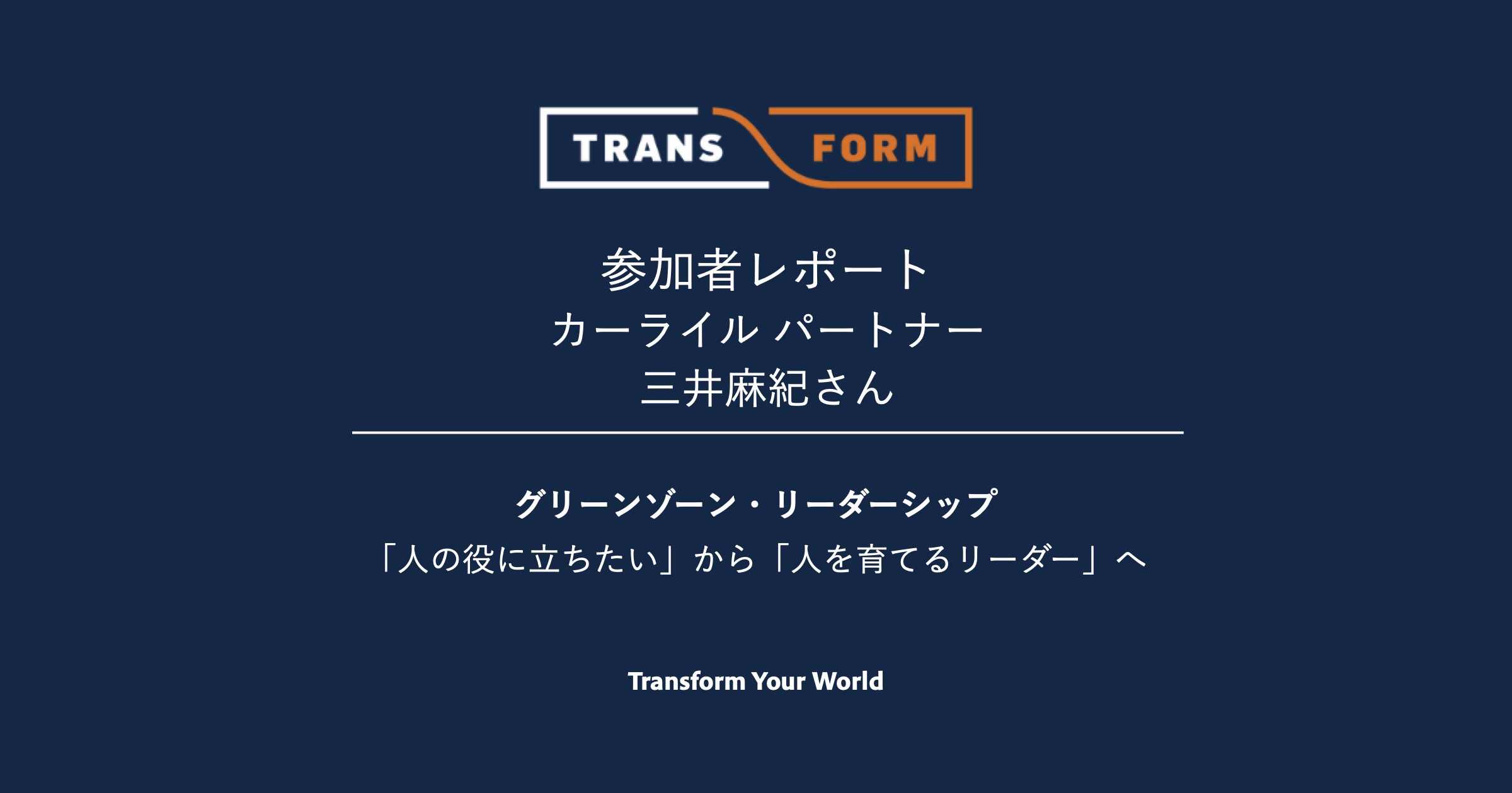グローバルな投資会社、カーライルのパートナーとして、日本における投資家関連業務の責任者を務める三井麻紀さんは、二児の母としての日々も両立してきました。子供の病気や親の介護といった人生の転機、そしてコロナ禍を経て、「人生の次のステージに進むためには外部のサポートが必要だ」と感じ、Transformのプログラムに参加。セッションでの気づきやジェレミー・ハンターとの対話を通じて、自身の根源的な願いである「人の役に立ちたい」という思いを軸にした、独自のリーダーシップを形づくっていきました。本記事では、三井さんがどのように変化し、周囲にポジティブな影響を広げているのか、その軌跡を辿ります。