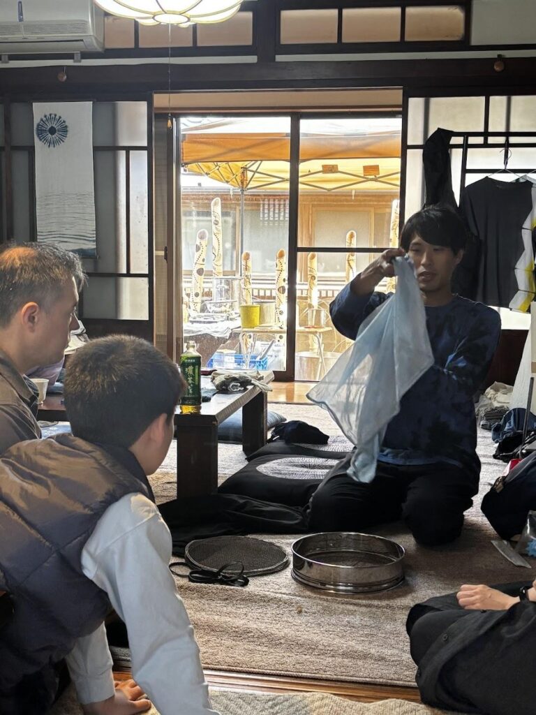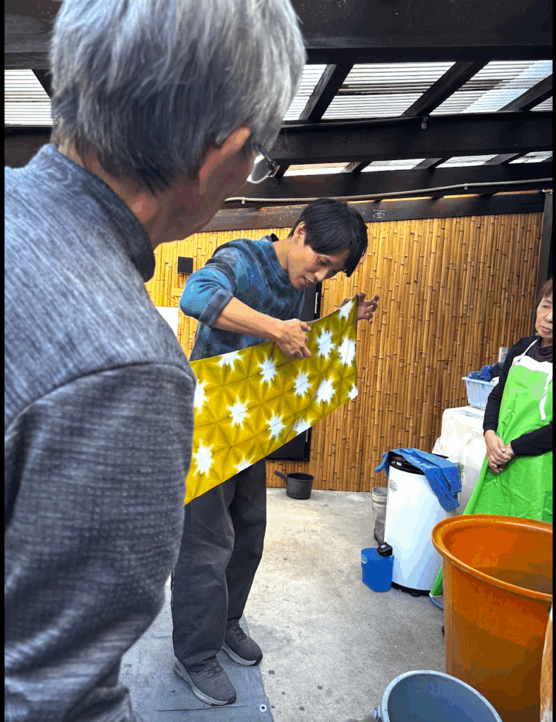 ショウジさんは今年も新しい染め技法を紹介してくれました。好奇心旺盛な皆さん(特にジェレミーと子供達)は、早速その技法に挑戦します。