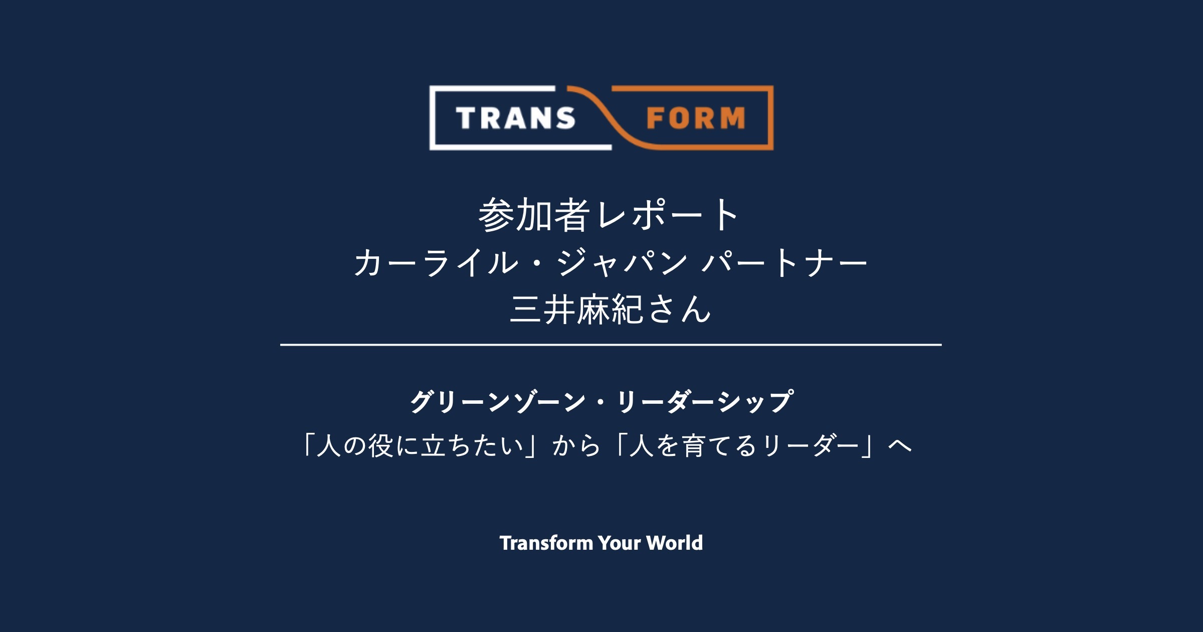 グローバルな投資会社、カーライルのパートナーとして、日本における投資家関連業務の責任者を務める三井麻紀さんは、二児の母としての日々も両立してきました。子供の病気や親の介護といった人生の転機、そしてコロナ禍を経て、「人生の次のステージに進むためには外部のサポートが必要だ」と感じ、Transformのプログラムに参加。セッションでの気づきやジェレミー・ハンターとの対話を通じて、自身の根源的な願いである「人の役に立ちたい」という思いを軸にした、独自のリーダーシップを形づくっていきました。本記事では、三井さんがどのように変化し、周囲にポジティブな影響を広げているのか、その軌跡を辿ります。